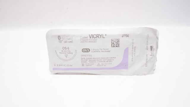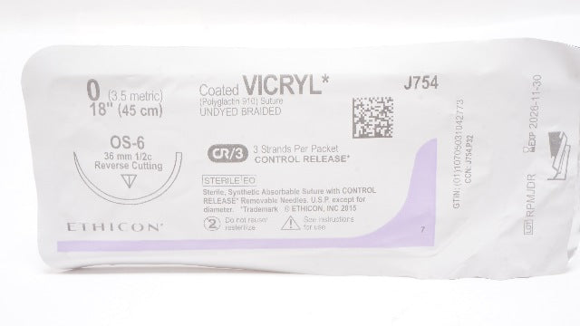 - Ethicon J754 0 Coated VICRYL, OS-6, 36mm 1/2c Reverse Cutting, 18inch