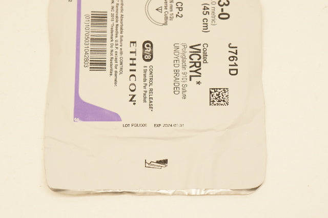 - Ethicon J761D 3-0 VICRYL, CP-2, 26mm 1/2c Reverse Cutting, 18inch