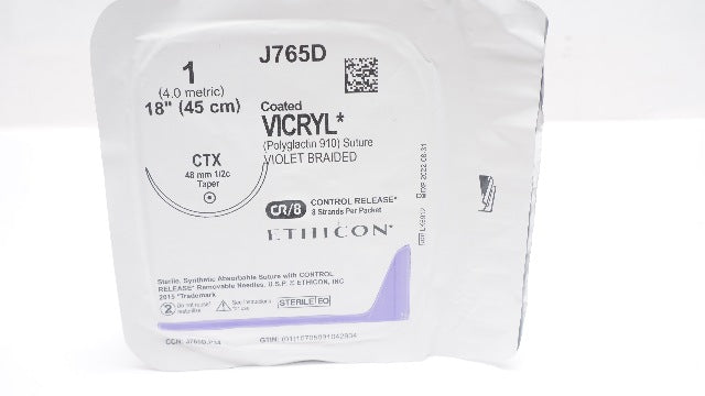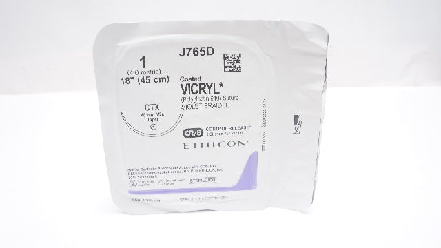 Ethicon J765D 1 Coated VICRYL Polyglactin Stre CTX 48mm 1/2c Taper, 18inch (x)