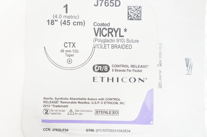 Ethicon J765D 1 VICRYL, CTX, 48mm 1/2c Taper, 18inch