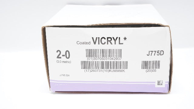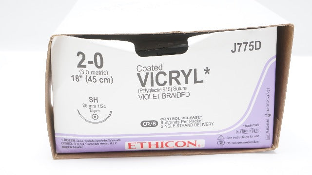 - Ethicon J775D 2-0 Coated VICRYL Stre SH 26mm 1/2c Taper 18inch - Box of 12
