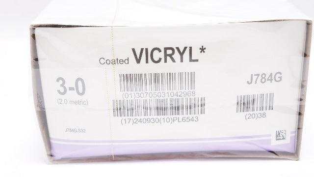 Ethicon J784G 3-0 Coated Vicryl, SH, 26mm 1/2c Taper, 27inch - Box of 12
