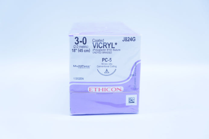 - Ethicon J824 3-0 MultiPass Vicryl, PC-5, 18inch - Box of 12 (x)