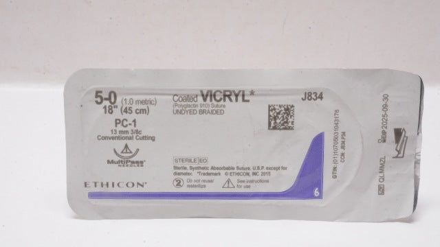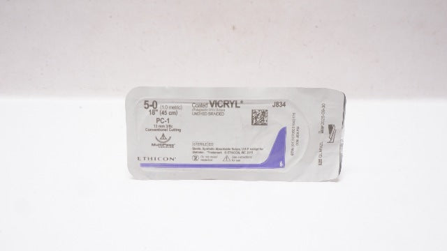 - Ethicon J834 5-0 VICRYL PC-1 13mm 3/8c 18inch