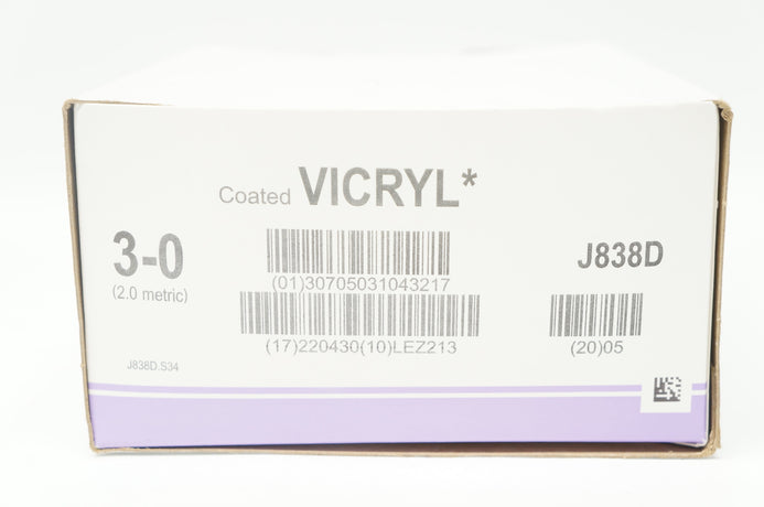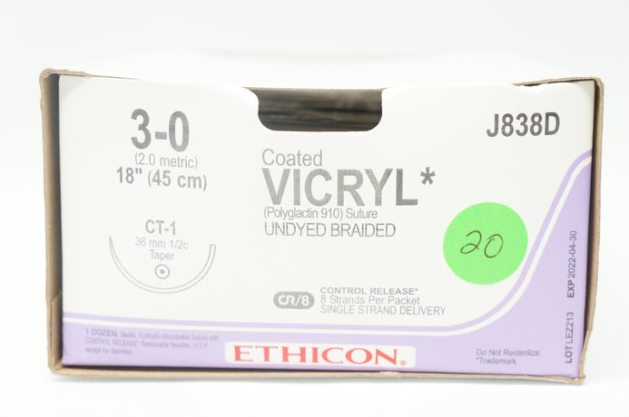 - Ethicon J838D 3-0 VICRYL, CT-1, 36mm 1/2c Taper, 18inch - Box of 12