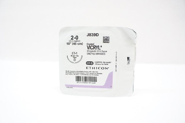 - Ethicon J839D 2-0 Coated VICRYL, CT-1, 36mm 1/2c Taper, 18inch