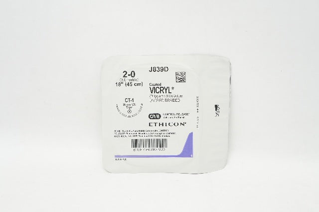 - Ethicon J839D 2-0 Coated VICRYL Stre CT-1 36mm 1/2c Taper, 18 inch (x)