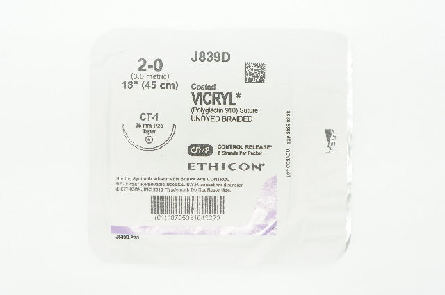 - Ethicon J839D 2-0 VICRYL CT-1 36mm 1/2c Taper 18 inch