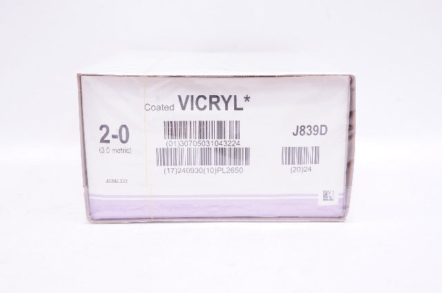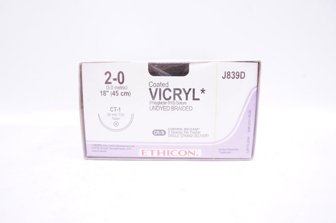 - Ethicon J839D 2-0 VICRYL CT-1 36mm 1/2c Taper 18 inch - Box of 12