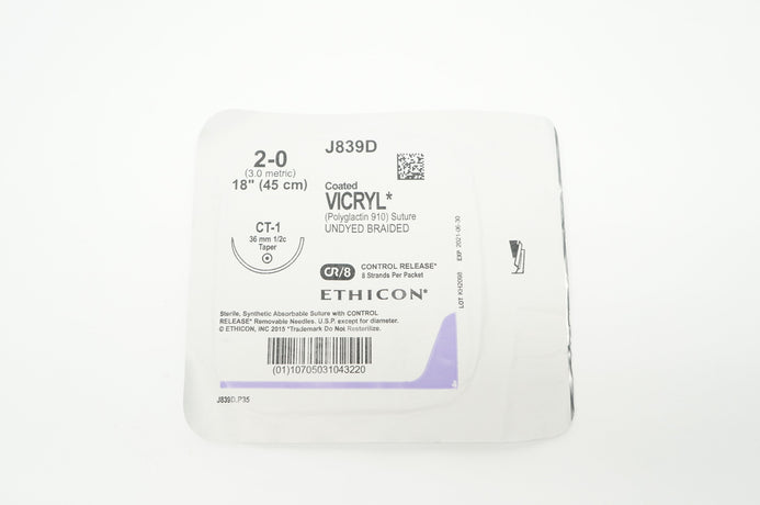 - Ethicon J839D 2-0 VICRYL CT-1 36mm 1/2c Taper 18 inch (x)