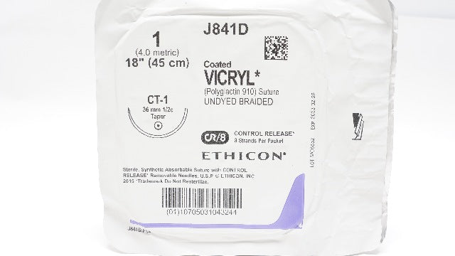 - Ethicon J841D 1 Coated VICRYL CT-1 36mm 1/2c Taper, 18inch (x)