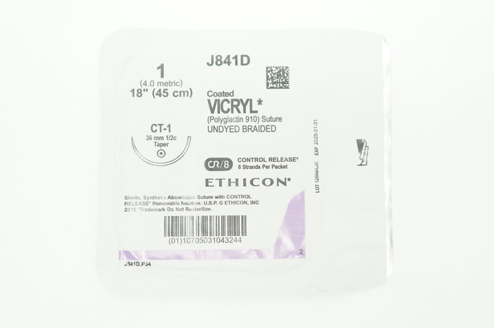 - Ethicon J841D 1 VICRYL CT-1 36mm 1/2c Taper 18 inch