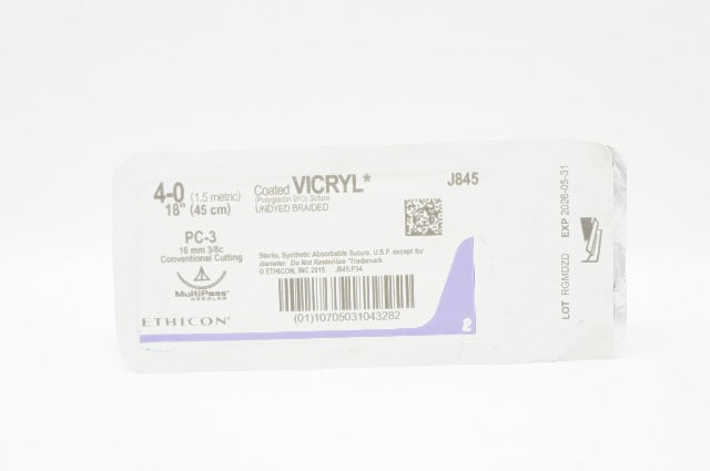 Ethicon J845 4-0 Coated VICRYL Stre PC-3 16mm 3/8c Conventional Cutting 18 in.