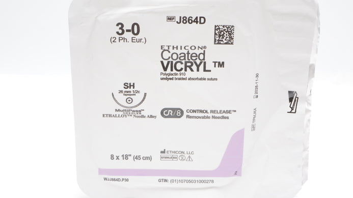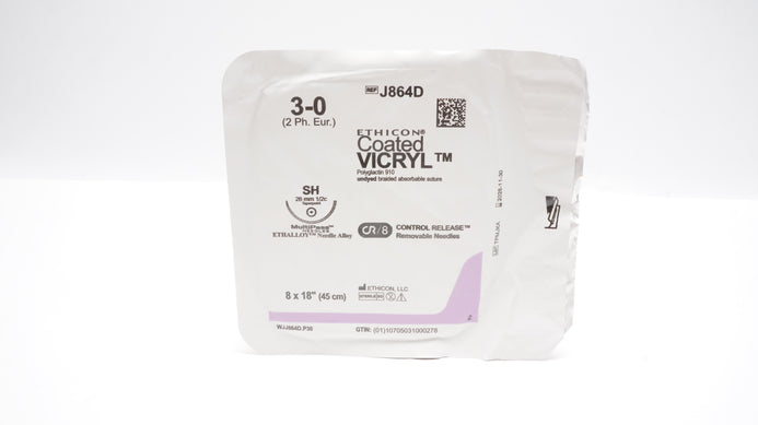 Ethicon J864D 3-0 Coated VICRYL Polyglactin 910 Undyed Braided Suture SH 26mm 1/2c Taperpoint 18inch
