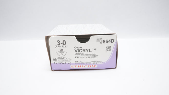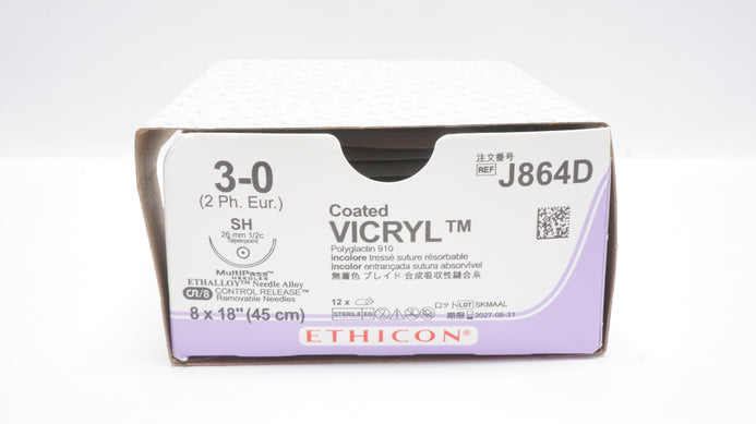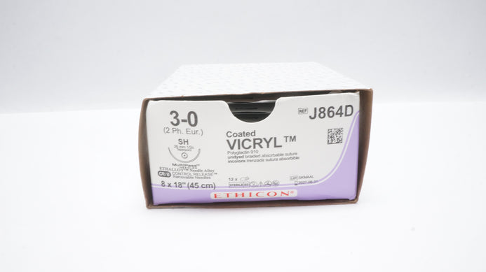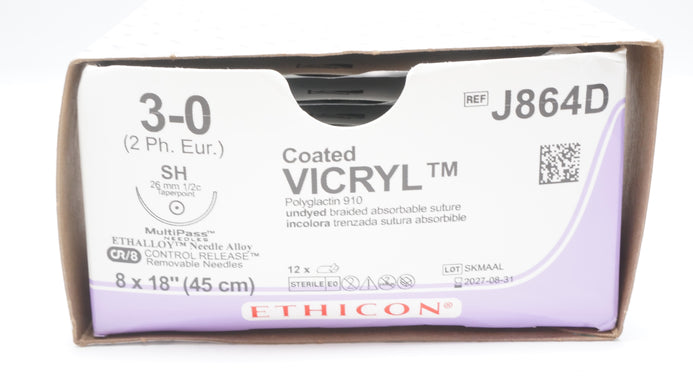- Ethicon J864D 3-0 Coated VICRYL Stre SH 26mm 1/2c Taperpoint 18inch - Box of 12