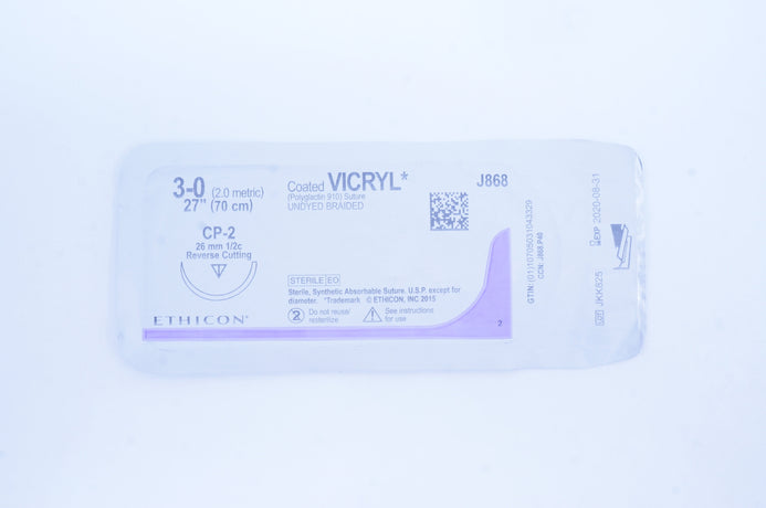 Ethicon J868 3-0 Coated VICRYL CP-2 26mm 1/2c Reverse Cutting, 27inch (x)