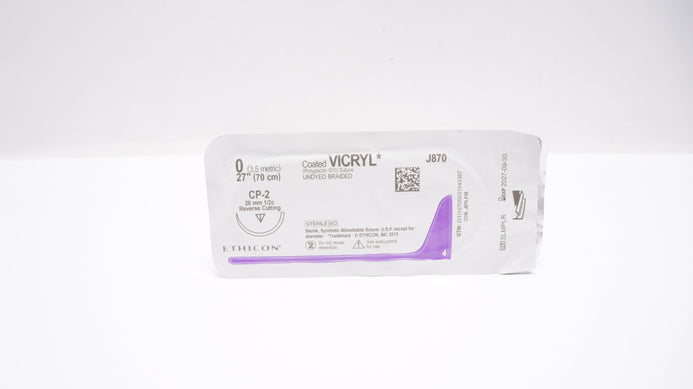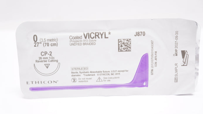 - Ethicon J870 0 Coated VICRYL Stre CP-2 26mm 1/2c Reverse Cutting, 27inch
