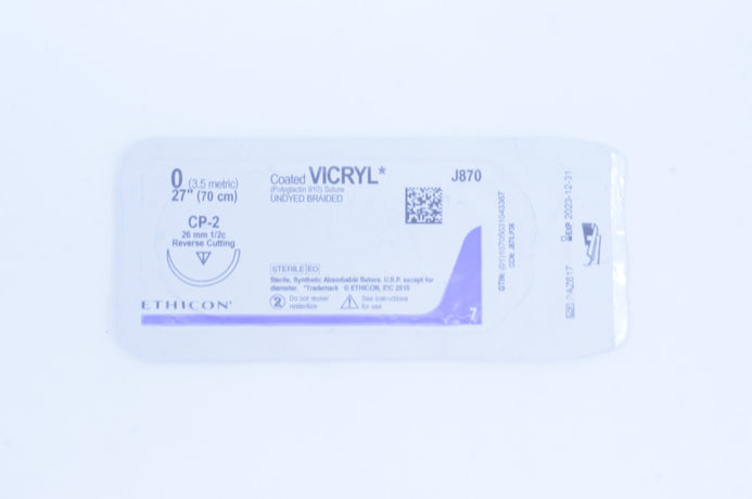 Ethicon J870 0 Coated VICRYL Stre, CP-2 26mm 1/2c Reverse Cutting, 27inch (x)