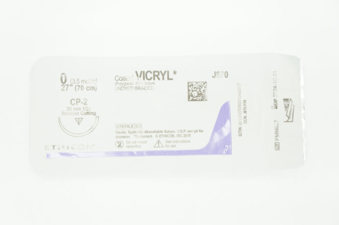 - Ethicon J870 0 Vicryl CP-2 26 mm 1/2c Reverse Cutting 27 inch