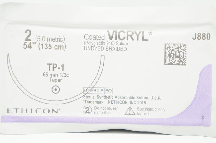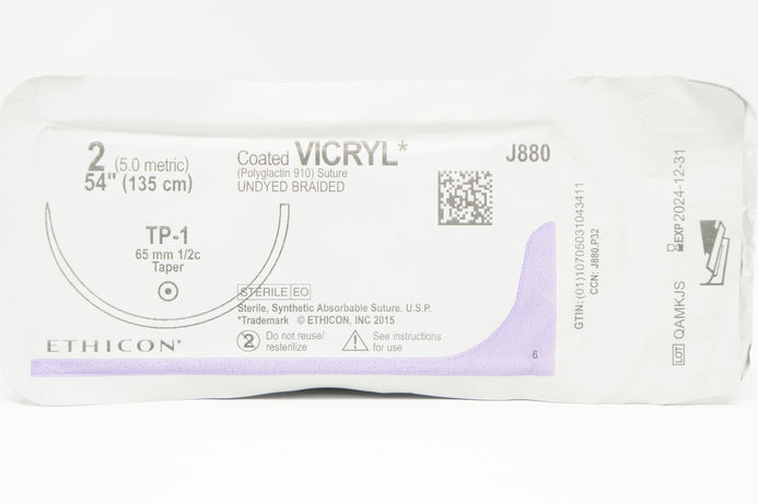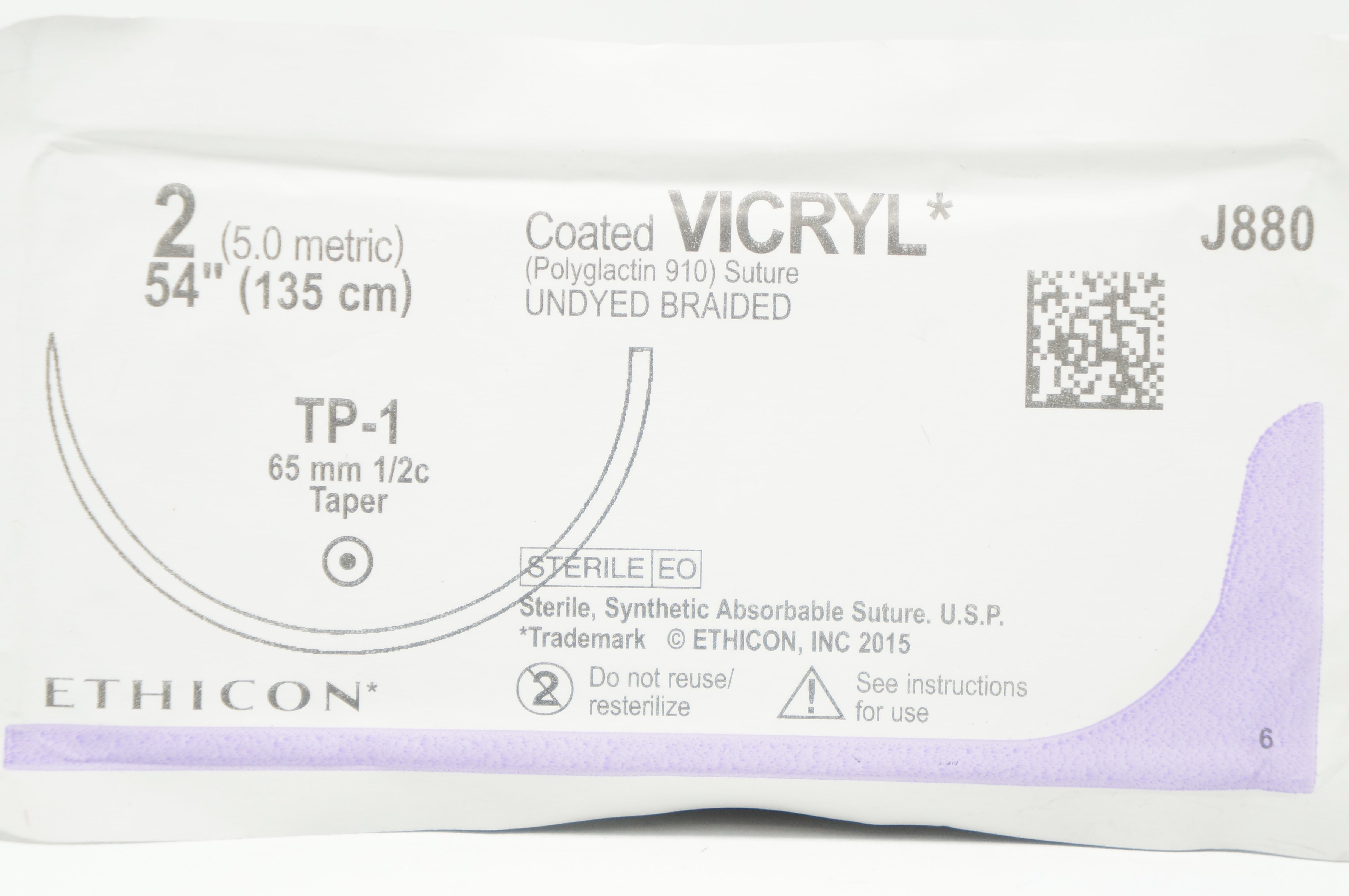 Ethicon J880 Coated Vicryl Stre Undyed Braided TP-1 65mm 1/2c Taper 54 in.