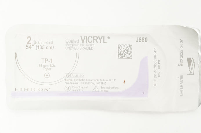 Ethicon J880 Coated Vicryl Stre Undyed Braided TP-1 65mm 1/2c Taper 54 in.