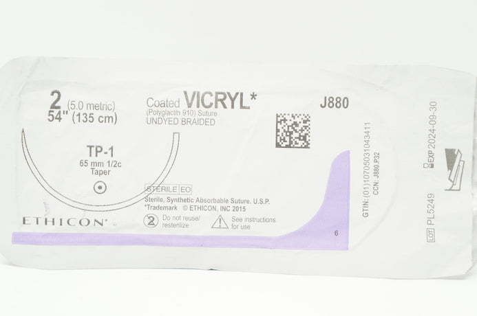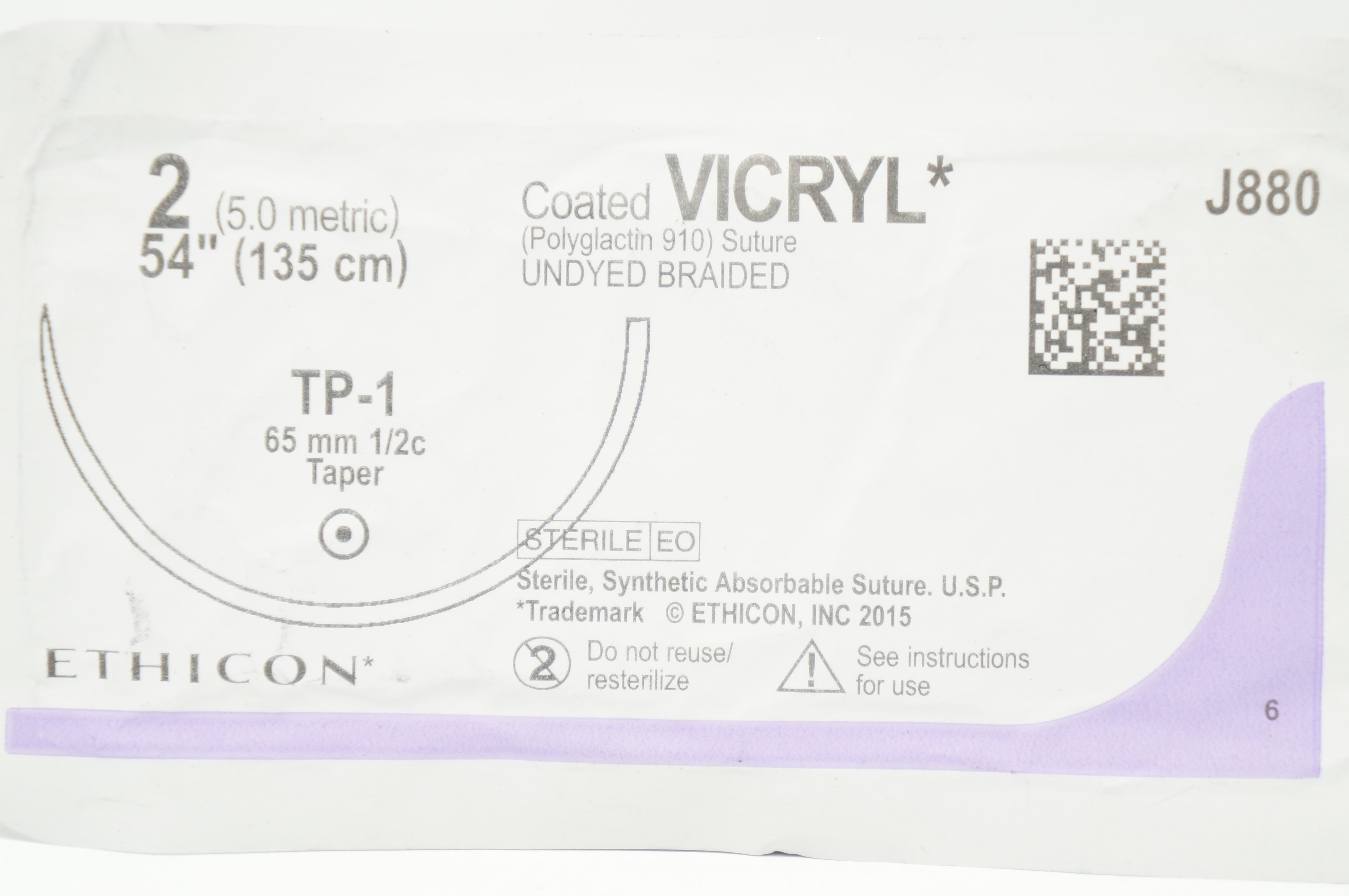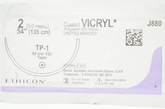 - Ethicon J880 Coated Vicryl Undyed Braided TP-1 65mm 1/2c Taper, 54inch