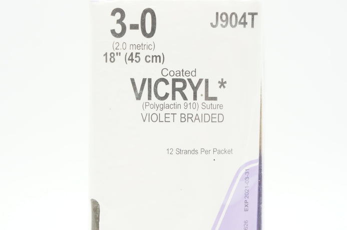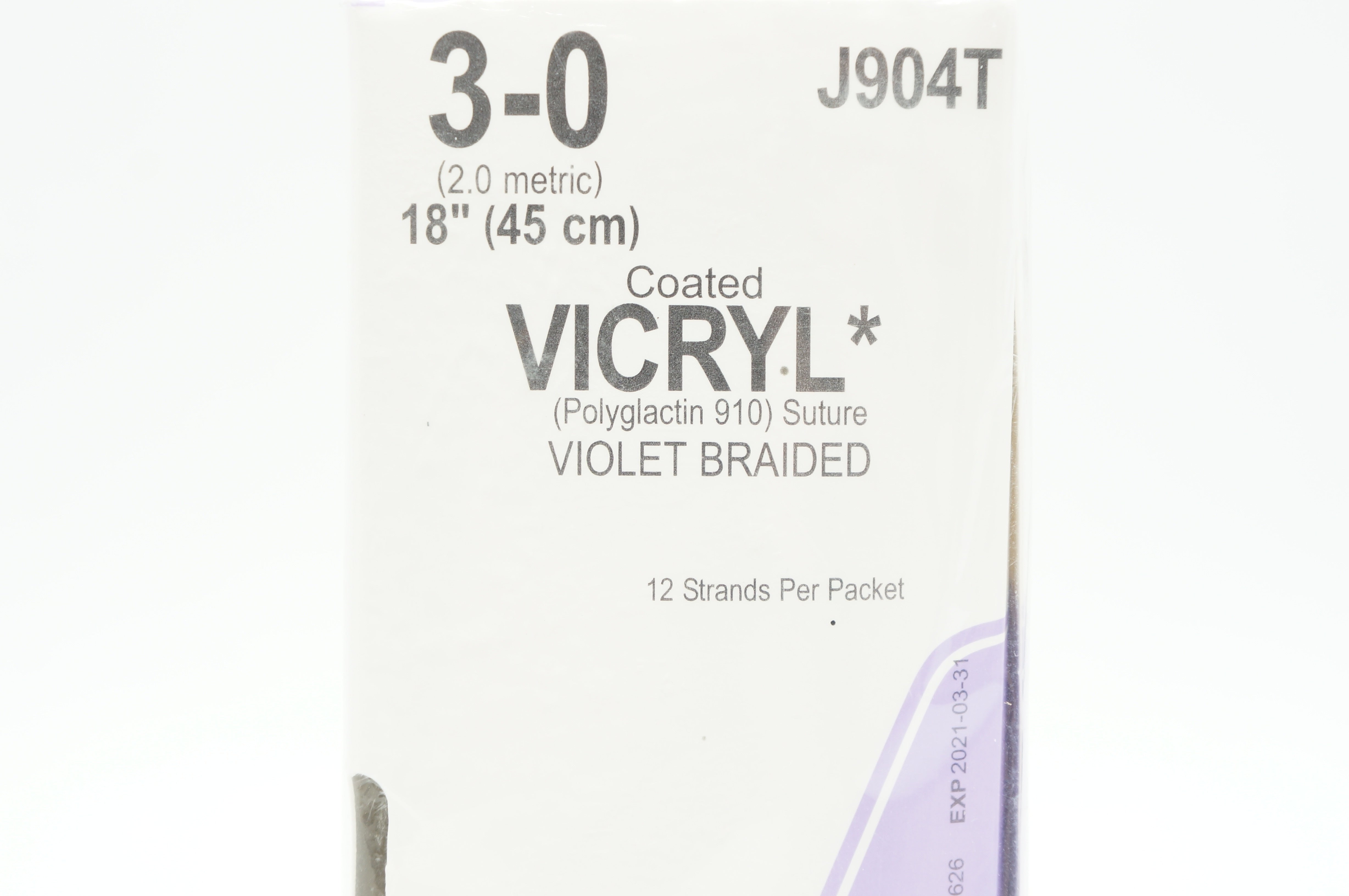 - Ethicon J904T 3-0 Vicryl Absorbable Braided Polyglactin, 18inch - Box of 24