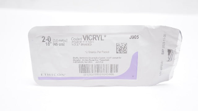 - Ethicon J905 2-0 Coated VICRYL Polyglactin 910 Stre, Violet Braided 18inch (x)