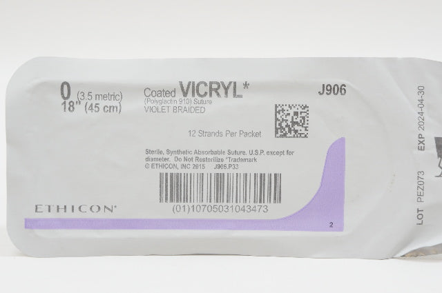 - Ethicon J906 0 VICRYL, Violet Braided, 18inch
