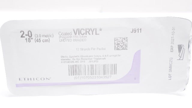- Ethicon J911 2-0 Coated VICRYL Polyglactin 910 Undyed Braided Stre, 18inch