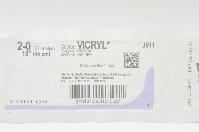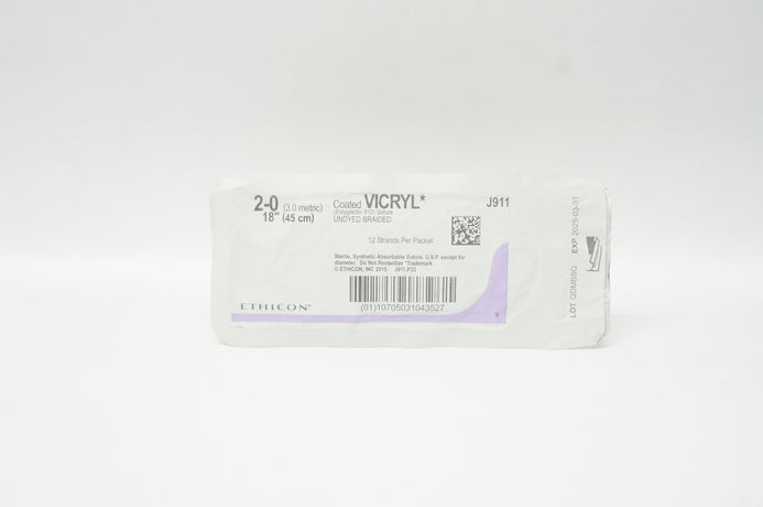 Ethicon J911 2-0 Coated VICRYL, Undyed Braided, 18inch