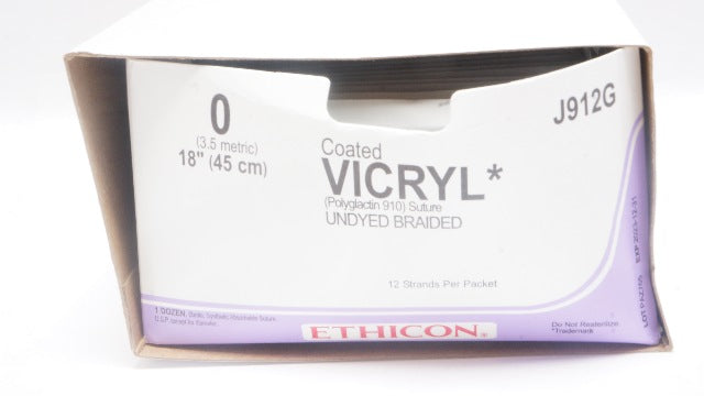 - Ethicon J912G 0 VICRYL, Undyed Braided, 18inch - Box of 12