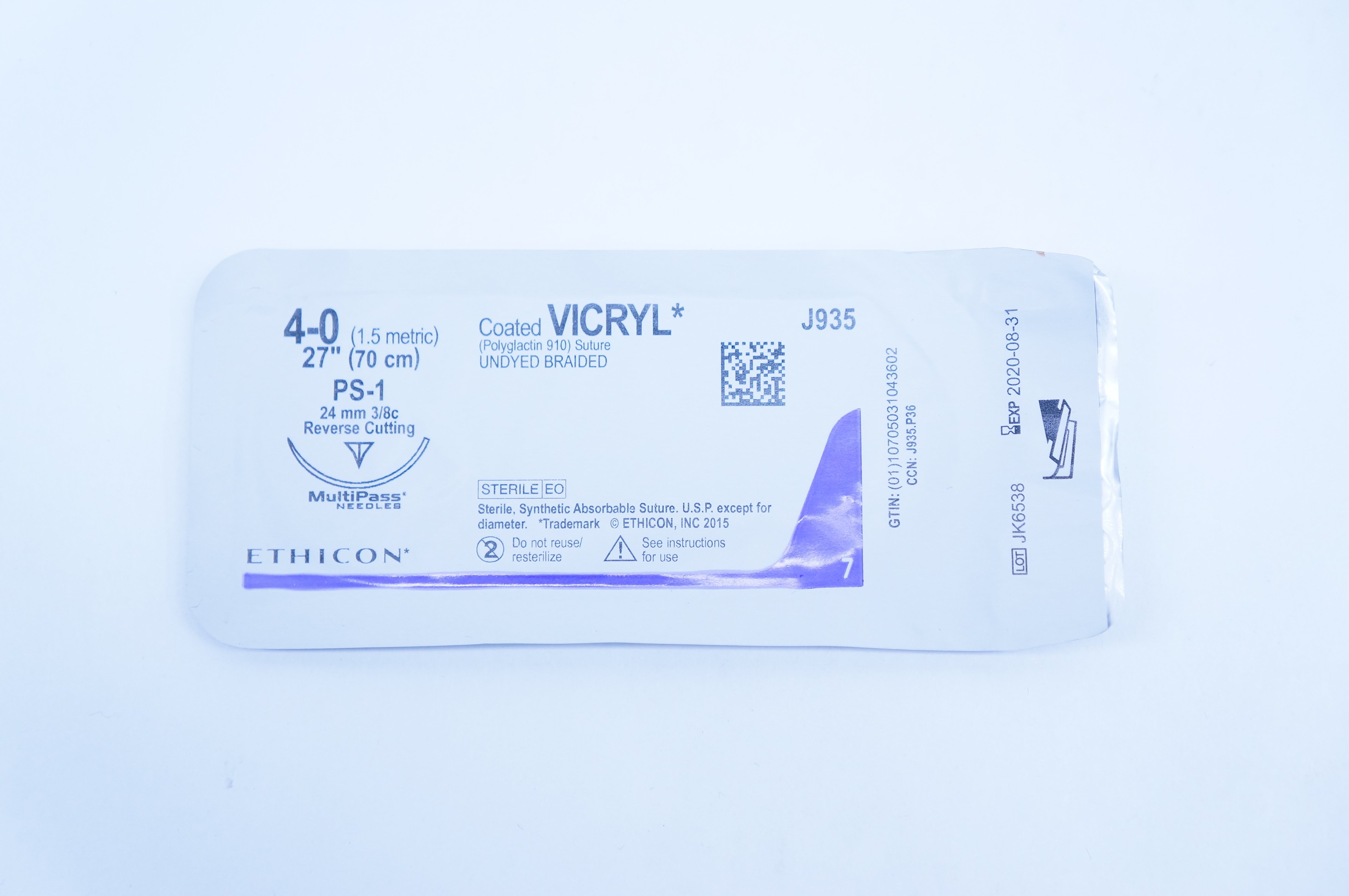 - Ethicon J935 Coated Vicryl Stre. Undyed Braided 4-0 27inch PS-11 (x)