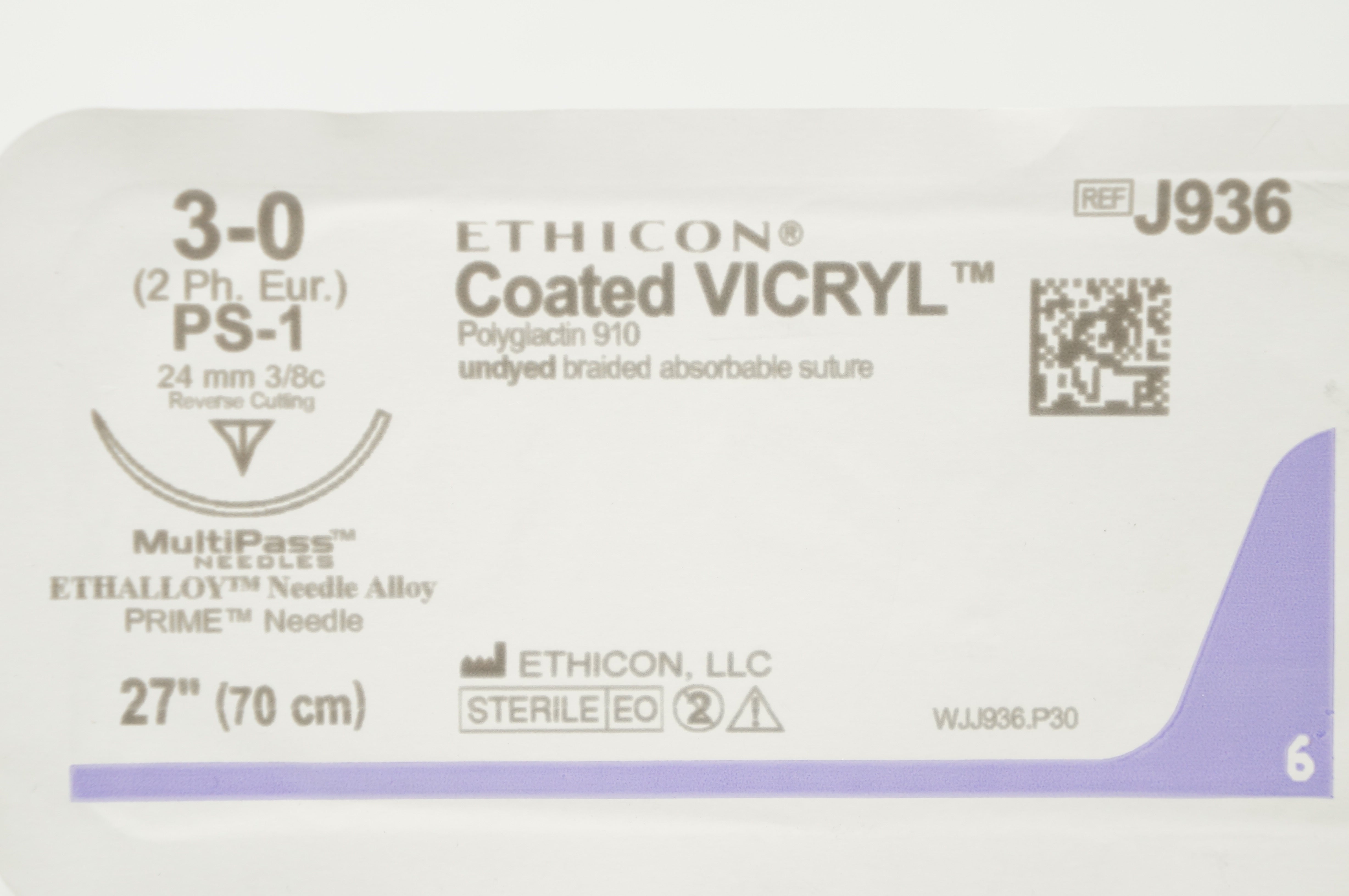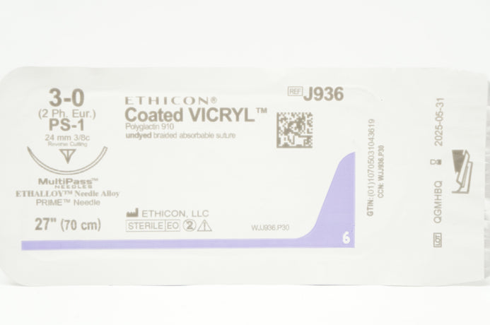 - Ethicon J936 Coated Vicryl Stre PS-1 24mm 3/8c Reverse Cutting, 27inch (x)