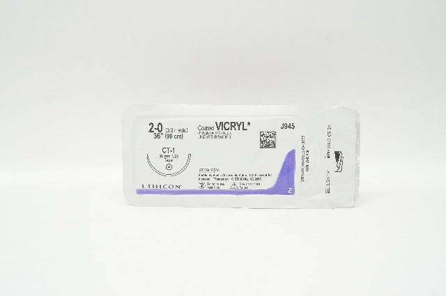 - Ethicon J945 2-0 Coated VICRYL Undyed Braided, CT-1, 36mm 1/2c Taper, 36inch (x)