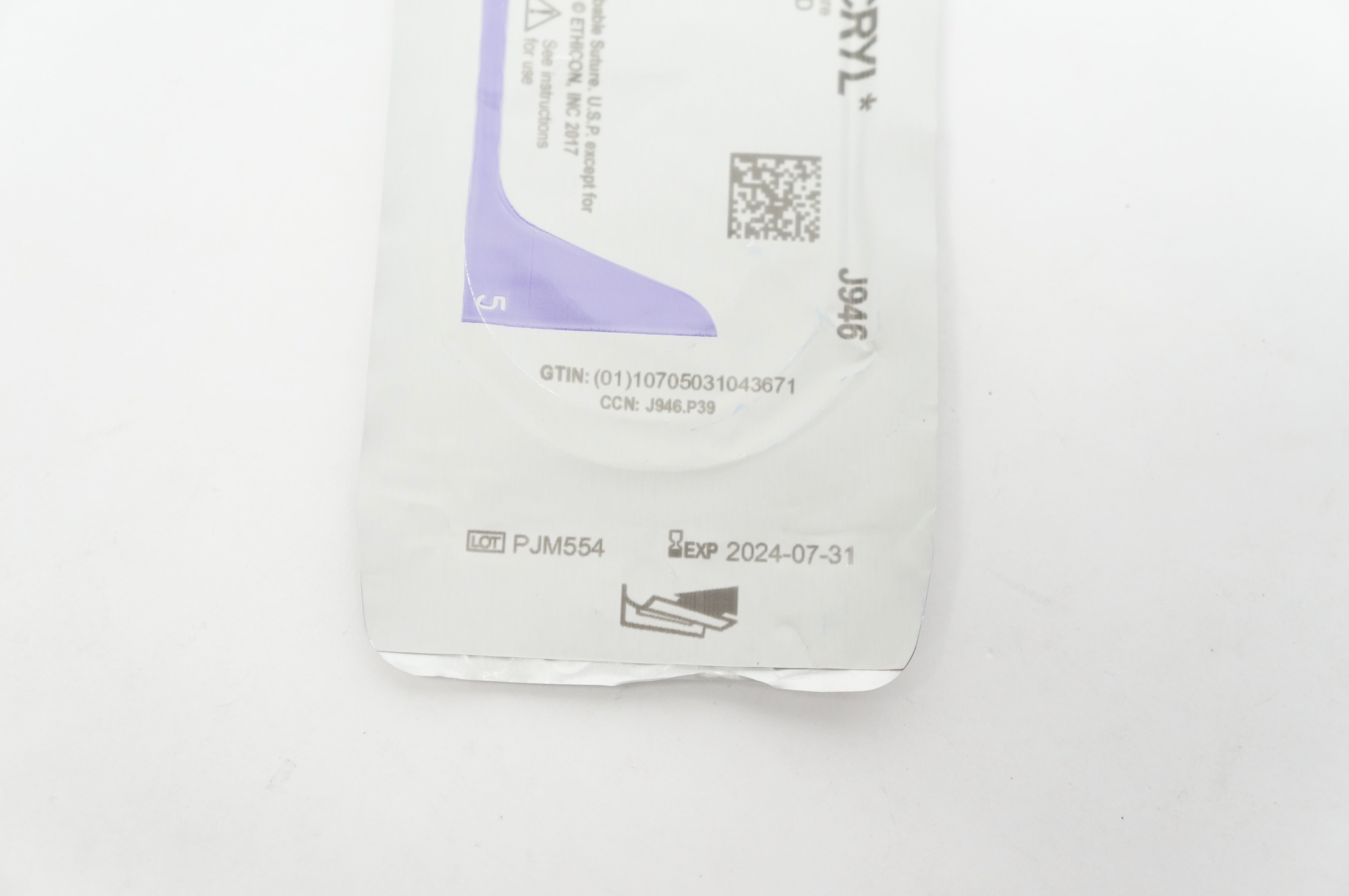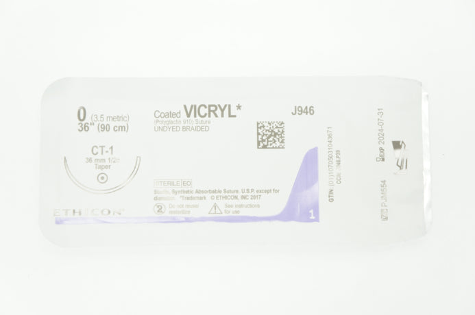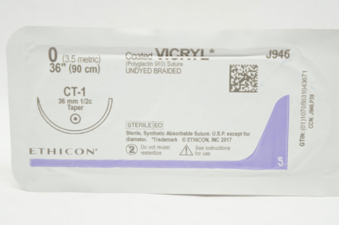 - Ethicon J946 0 Coated VICRYL Polyglactin 910 Stre CT-1 36mm 1/2c Taper, 36inch