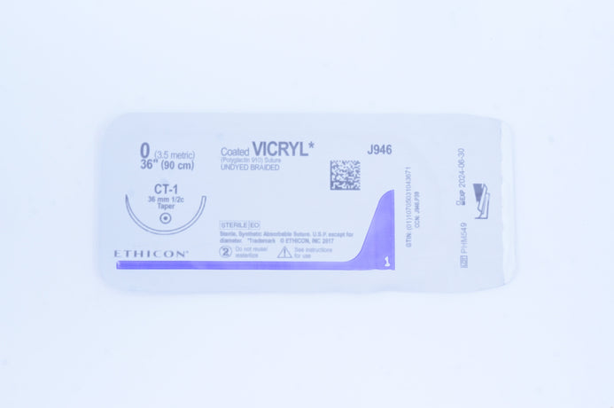 Ethicon J946 0 Coated VICRYL (Polyglactin 910) Suture, Undyed Braided, CT-1 36mm 1/2c Taper, 36inch