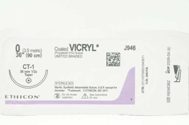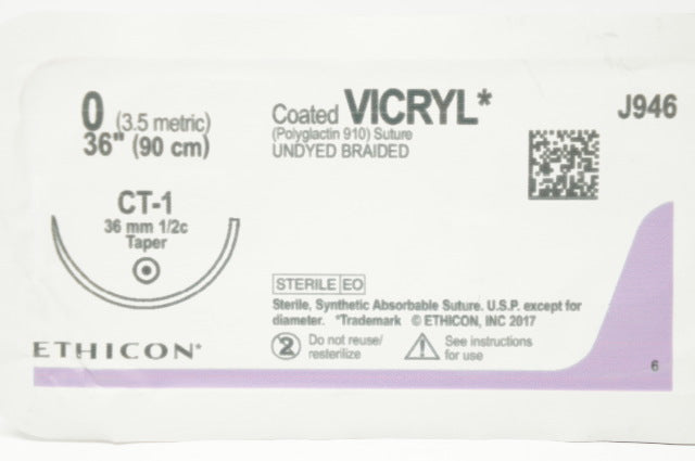 - Ethicon J946H 0 VICRYL Stre Undyed Braided CT-1 36mm 1/2c Taper, 36inch