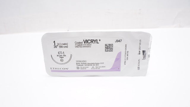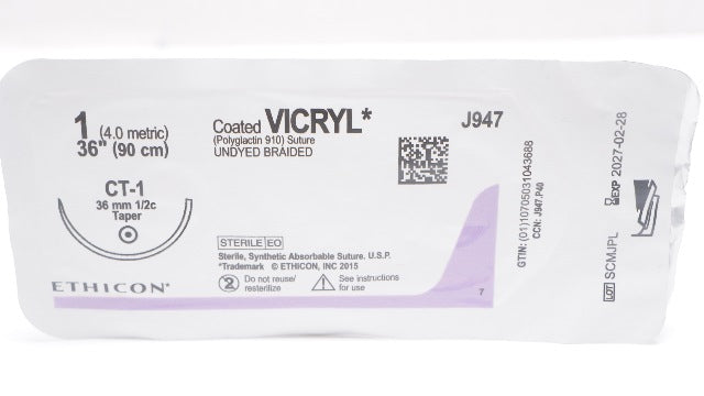 - Ethicon J947 1 Coated VICRYL Stre Undyed Braided CT-1 36mm 1/2c Taper 36inch