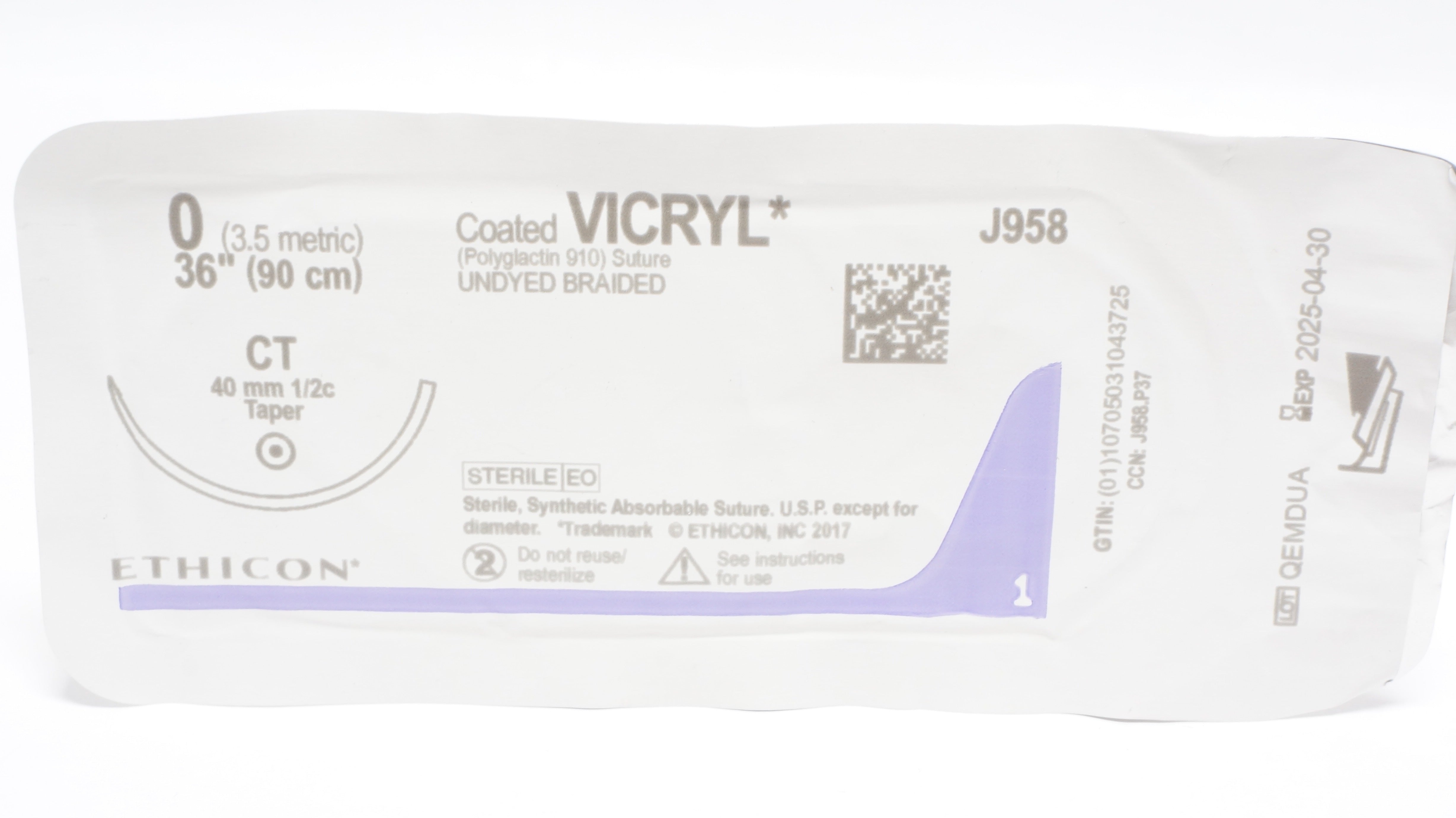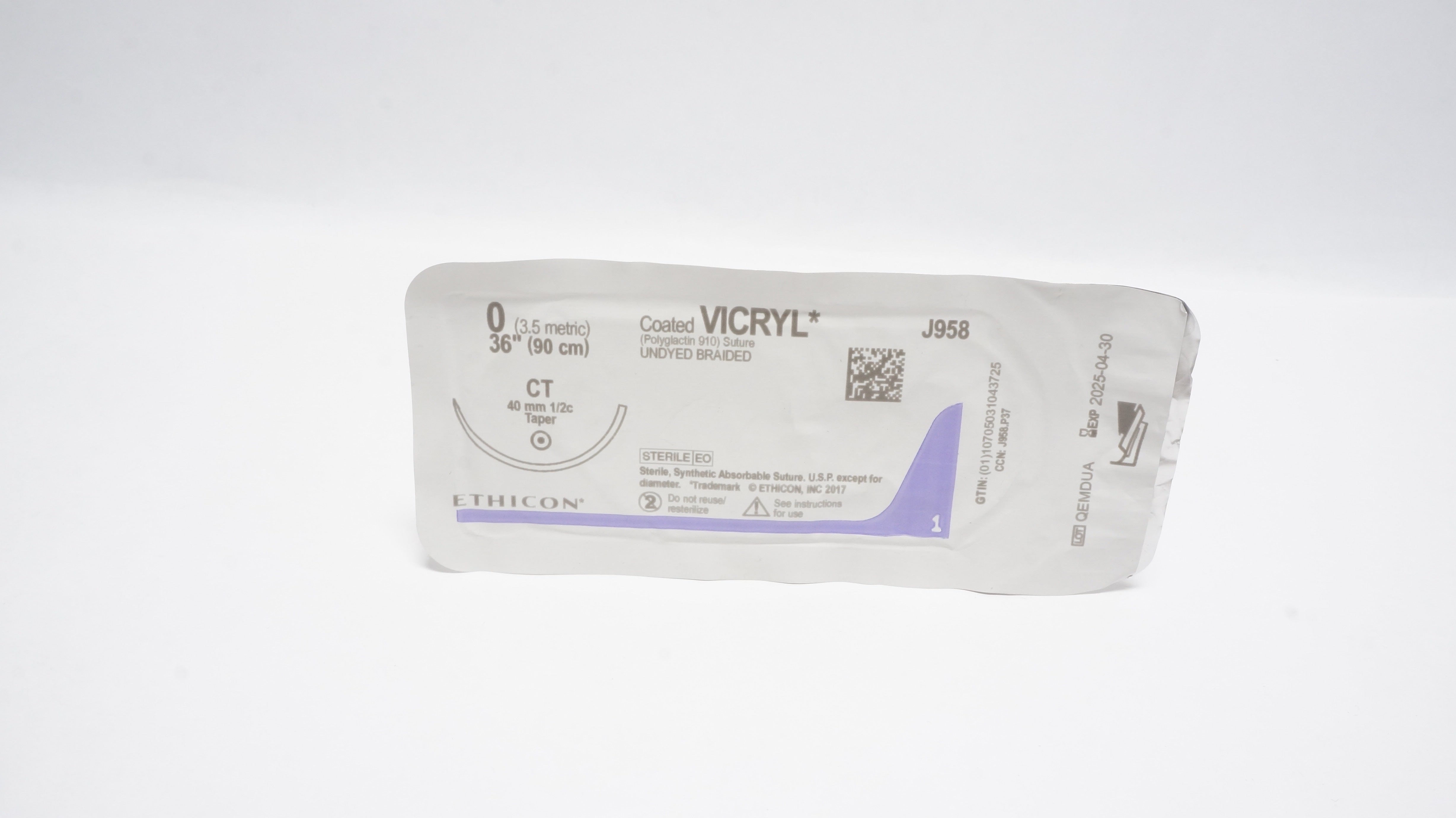 Ethicon J958 0 Coated VICRYL Polyglactin Stre CT 40mm 1/2c Taper 36 inch (x)