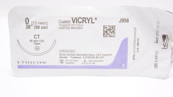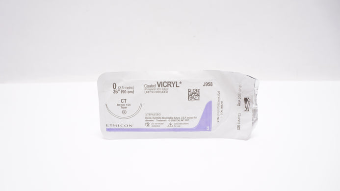 Ethicon J958 0 Coated VICRYL Polyglactin Stre CT 40mm 1/2c Taper, 36inch
