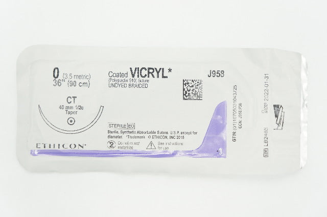 - Ethicon J958 0 Vicryl CT 40mm 1/2c Taper 36 inch