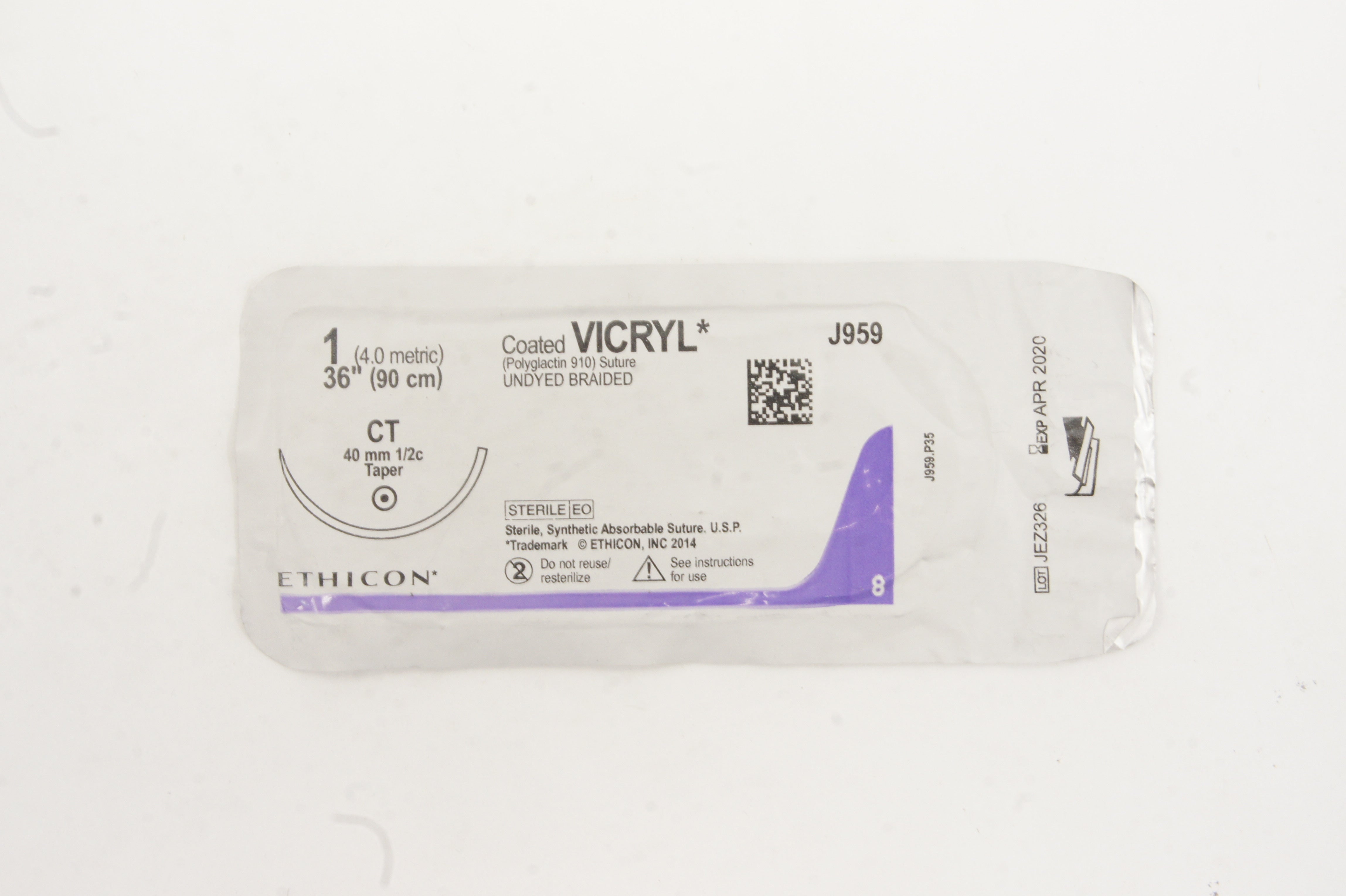 - Ethicon J959 1 Coated VICRYL, CT 40mm 1/2c Taper, 36inch (x)