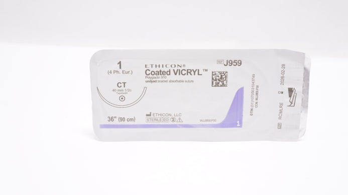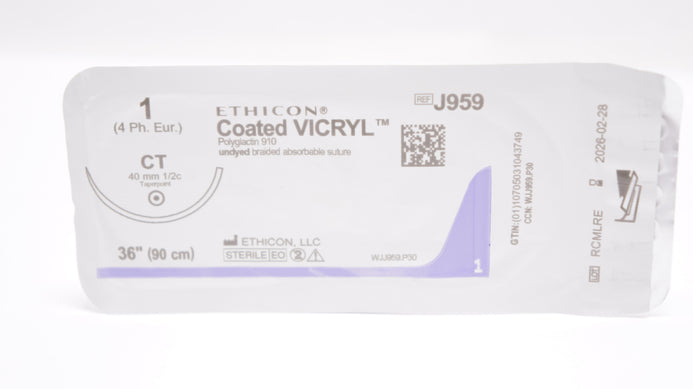 Ethicon J959 1 Coated VICRYL Polyglactin 910 Stre CT 40mm 1/2c Taperpoint 36inch