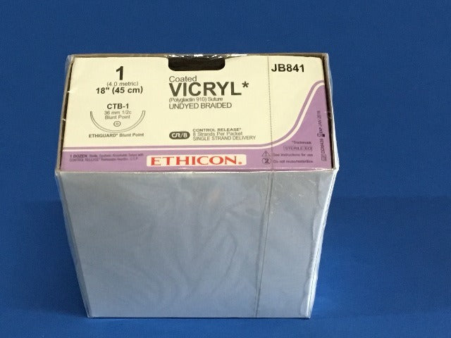 - Ethicon JB841 VICRYL, CTB-1 , Undyed Braided 8-18 - Box of 12