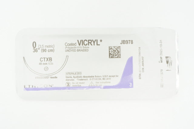 - Ethicon JB978 0 Coated VICRYL CTXB 48mm 1/2c 36inch