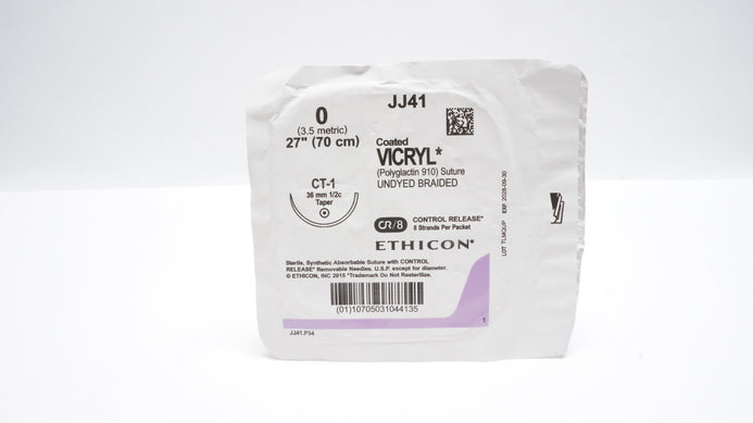 - Ethicon JJ41 0 Coated VICRYL Polyglactin Stre CT-1 36mm 1/2c Taper, 27inch