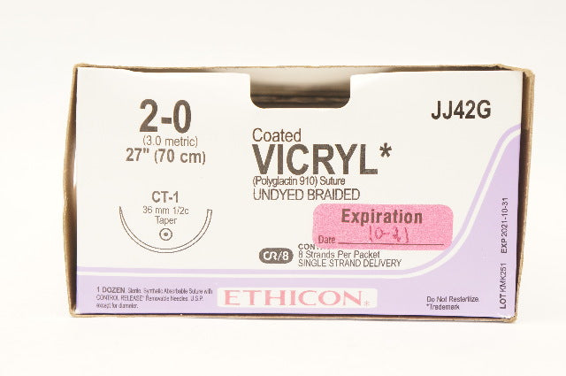 - Ethicon JJ42G 2-0 Coated VICRIL CT-1 36mm 1/2c Taper, 27inch (x) - Box of 12