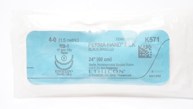 - Ethicon K571 4-0 PERMA-HAND 24inch Black Braided Stre.RB-1 Ethalloy Ndle.17mm(x)