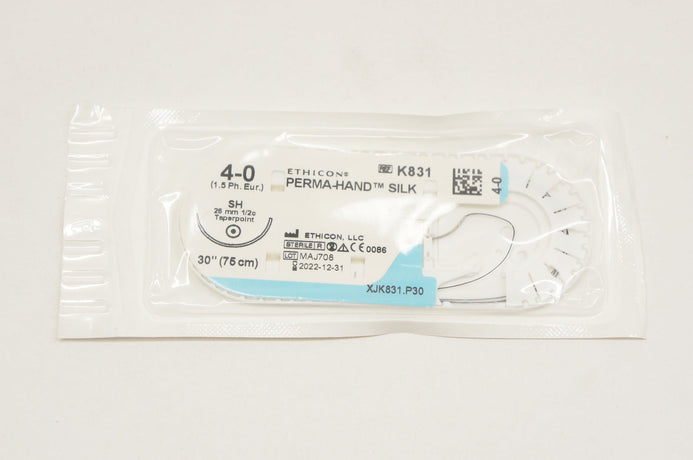 - Ethicon K831 4-0 PERMA-HAND SILK, SH, 26mm 1/2c, 30inch